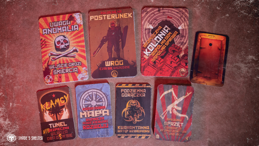 Ciekawą mechaniką jest tu używanie kart do odkrywania i tworzenia sieci tuneli, po których poruszamy się poszukując nowych kolonii, posterunków czy ogniw zarazy w anomaliach. Dzięki temu wrażenie z rozgrywki jest zupełnie inne, bardziej przygodowe. Nie ma tutaj żadnej interakcji między graczami (poza handlem), więc cała współpraca sprowadza się do eksploracji i dzieleniu się obowiązkami – by jak najszybciej znaleźć źródła zarazy, mając na uwadze, że wirus może mutować i zmieniać kombinację, więc gracze muszą działać zwinnie.