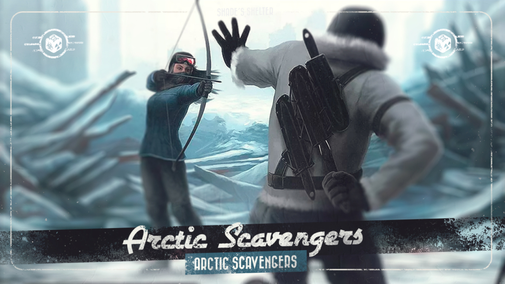 Arctic Scavengers to gra rywalizacyjna oparta o prosty, ale bardzo ciekawy mechanizm Deck Buildingu. Każdy z graczy zaczyna z określoną liczbą kart prezentujących ich sprzęt i ocalałych oraz przy odpowiednim ich zagrywaniu – umożliwi im to przeszukiwwanie pustkowi, rekrutowwanie nowych ocalałych płacąc upolowanym jedzeniem bądź zdobytymi medykamentami (waluta gry) oraz walczyć z innymi graczami o bardziej wartościowe zasoby. Cała mechanika polega na odpowiednim kupowaniu kart, odrzucaniu zbędnych, tak by stworzyć najbardziej optymalne ustawienia, które pozwolą sprawnie walczyć i zdobywać nowe karty. Każda z tych kart prezentuje sprzęt wzmacniający podstawowe akcję lub karty ocalałych o specjalnych umiejętnościach, a te również liczą się do finalnej puli ocalałych, których ilość na koniec gry zadecyduje o wygranej. Gra jest bardzo dynamiczna i intensywna przepełnione dużą ilością negatywnej interakcji.